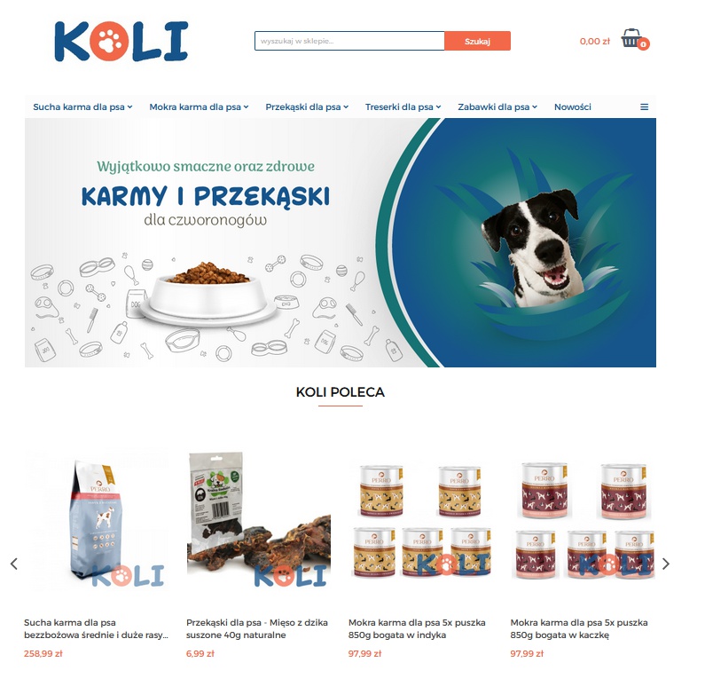 KOLI to sklep online, oferujący zdrowe karmy i przekąski dla psów. Asortyment w tym punkcie sprzedaży jest faktycznie szeroki, wobec czego klienci mają sporo do wybrania. Mogą dobierać produkty takie jak karma dla psa bez zbóż na równi pod względem rasy, wagi, jak i formy zdrowotnej domowego czworonoga. Oferta zawiera produkty rozdzielone w podkategoriach takich jak: treserki dla psa. W oddzielnej podkategorii umieszczono bestsellery i nowości. Osoby które prowadzą punkt sprzedaży to wielbiciele czworonogów, jacy zdecydowali się poza dystrybucją uruchamiać również blog tematyczny.